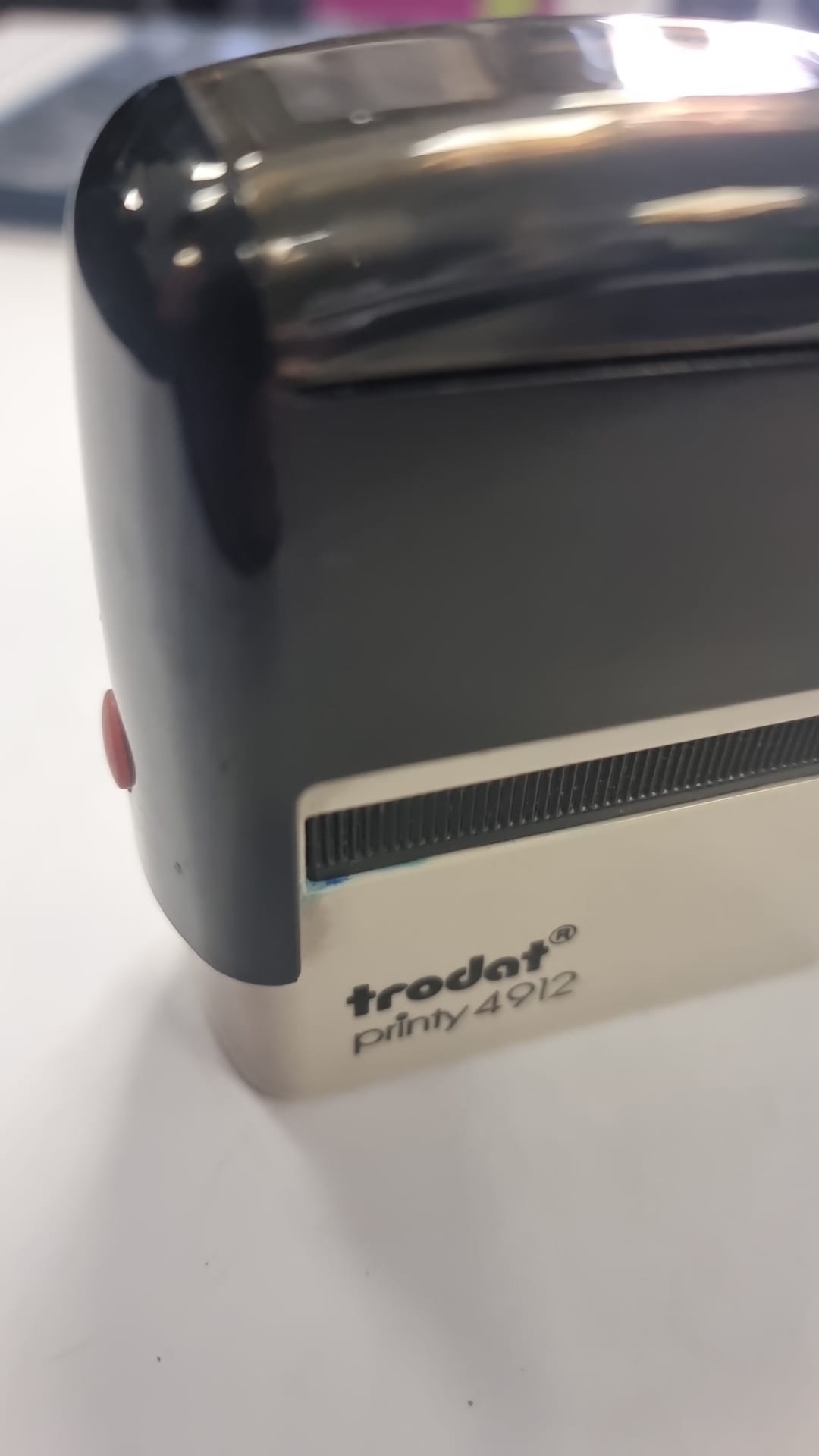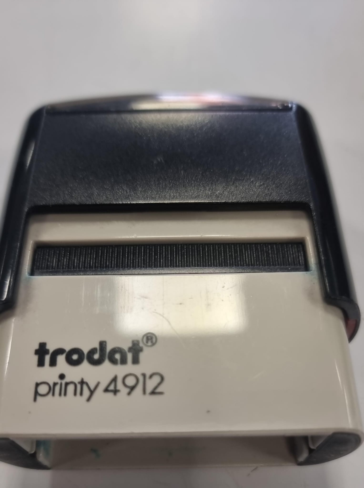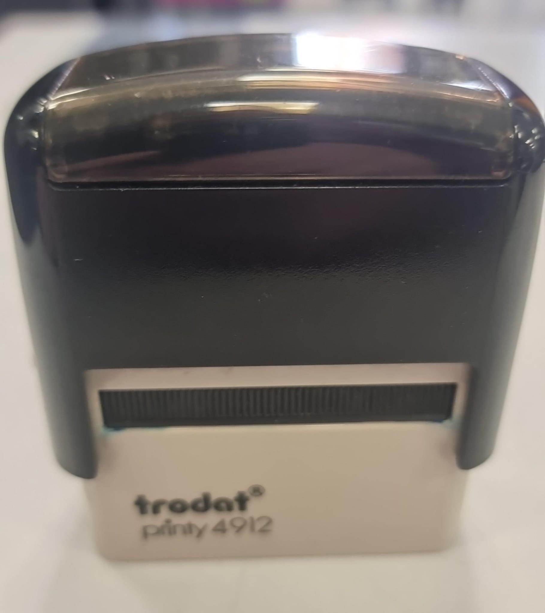 Sello automático de la marca Trodat, modelo Printy 4912. Diseño compacto y ligero. Carcasa de plástico resistente.