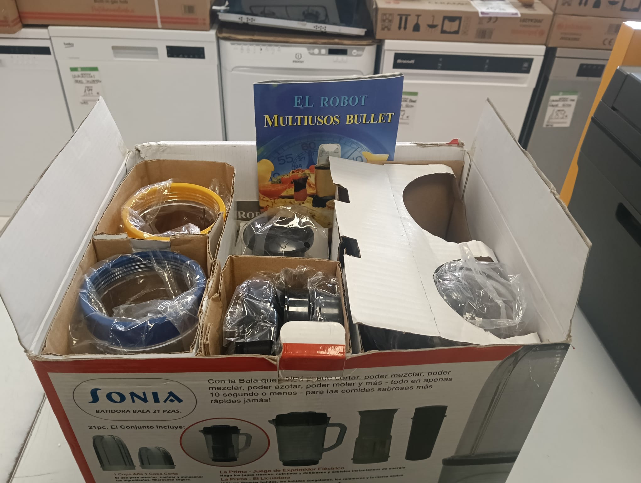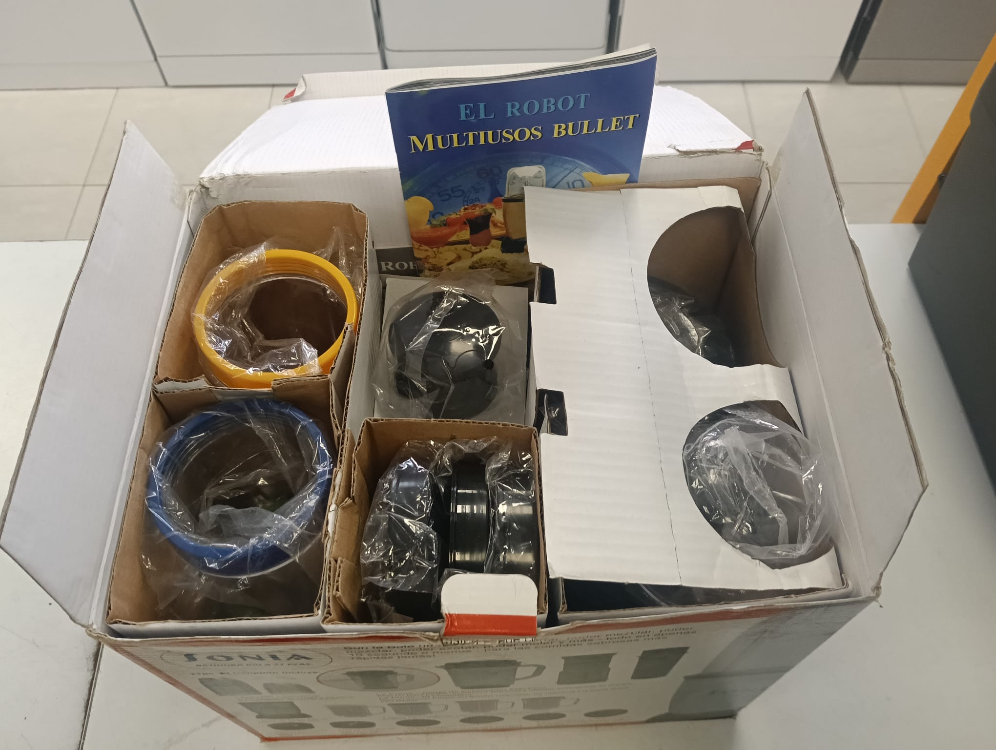 Set de batidora compuesto por 21 pzs. Ideal para batidos y alimentos no extremadamente sólidos. 4 vasos con sus tapas. Batidora multiusos.