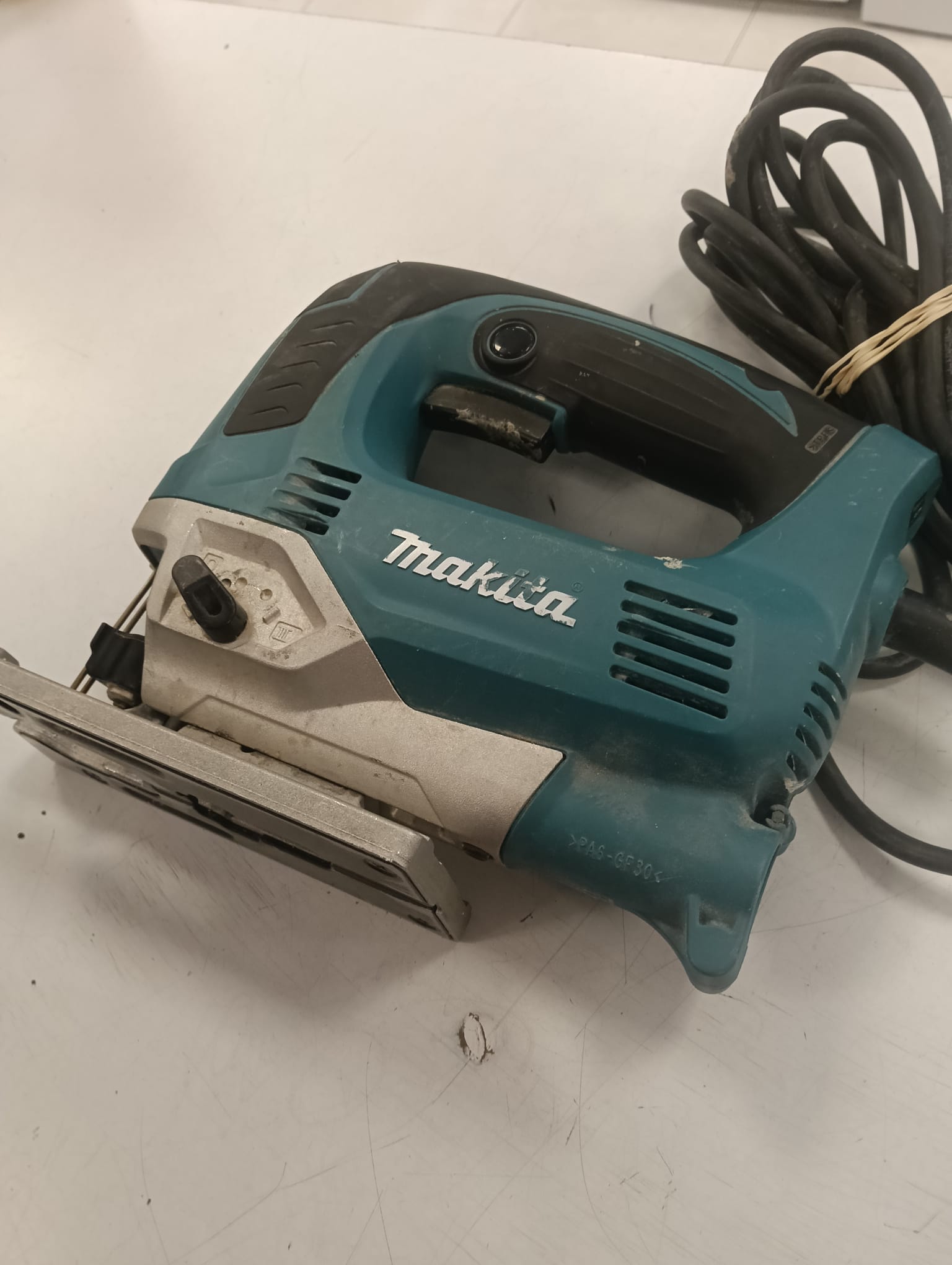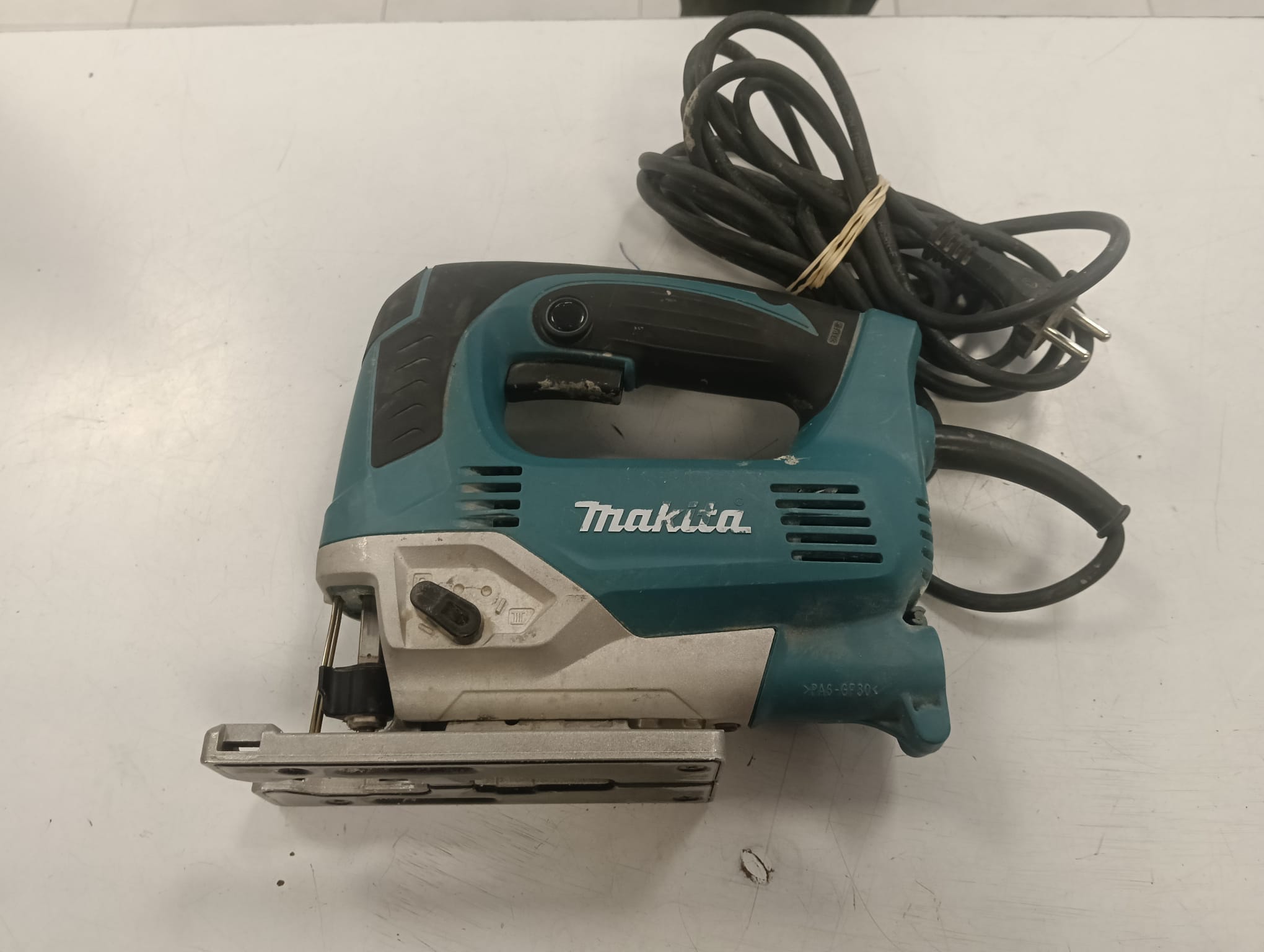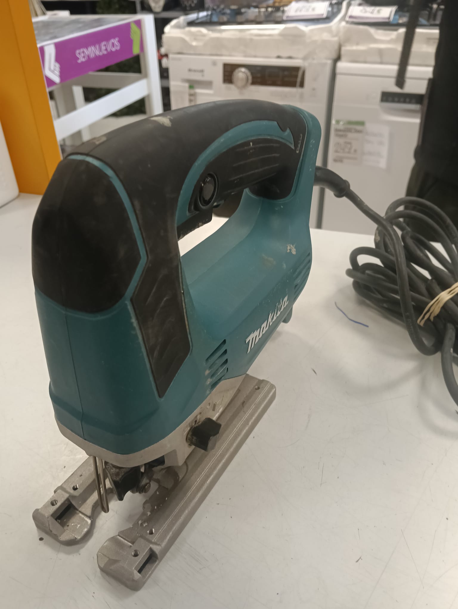 Sierra de calar marca Makita, modelo JV0600. Color azul y gris. Diseño ergonómico.