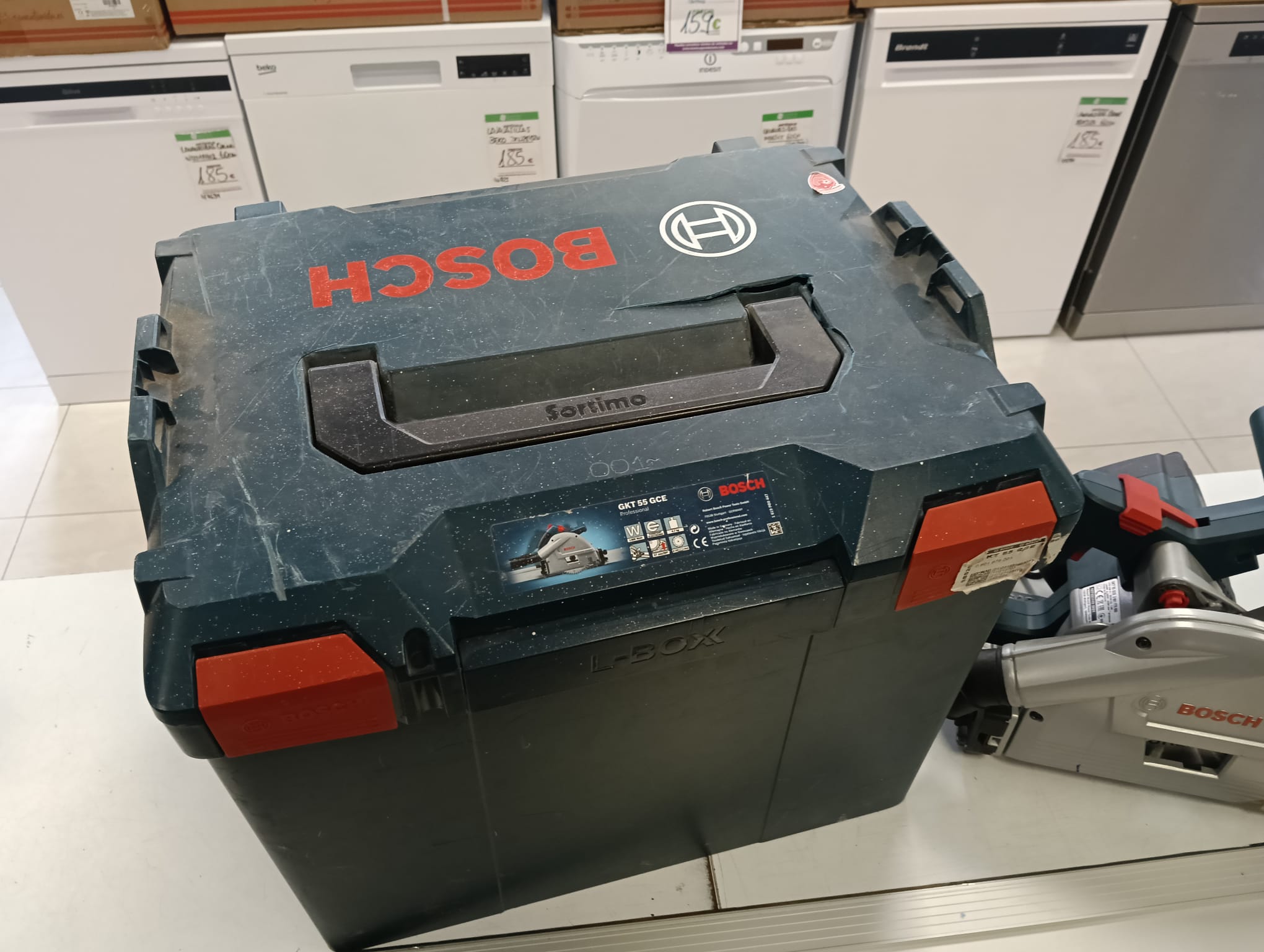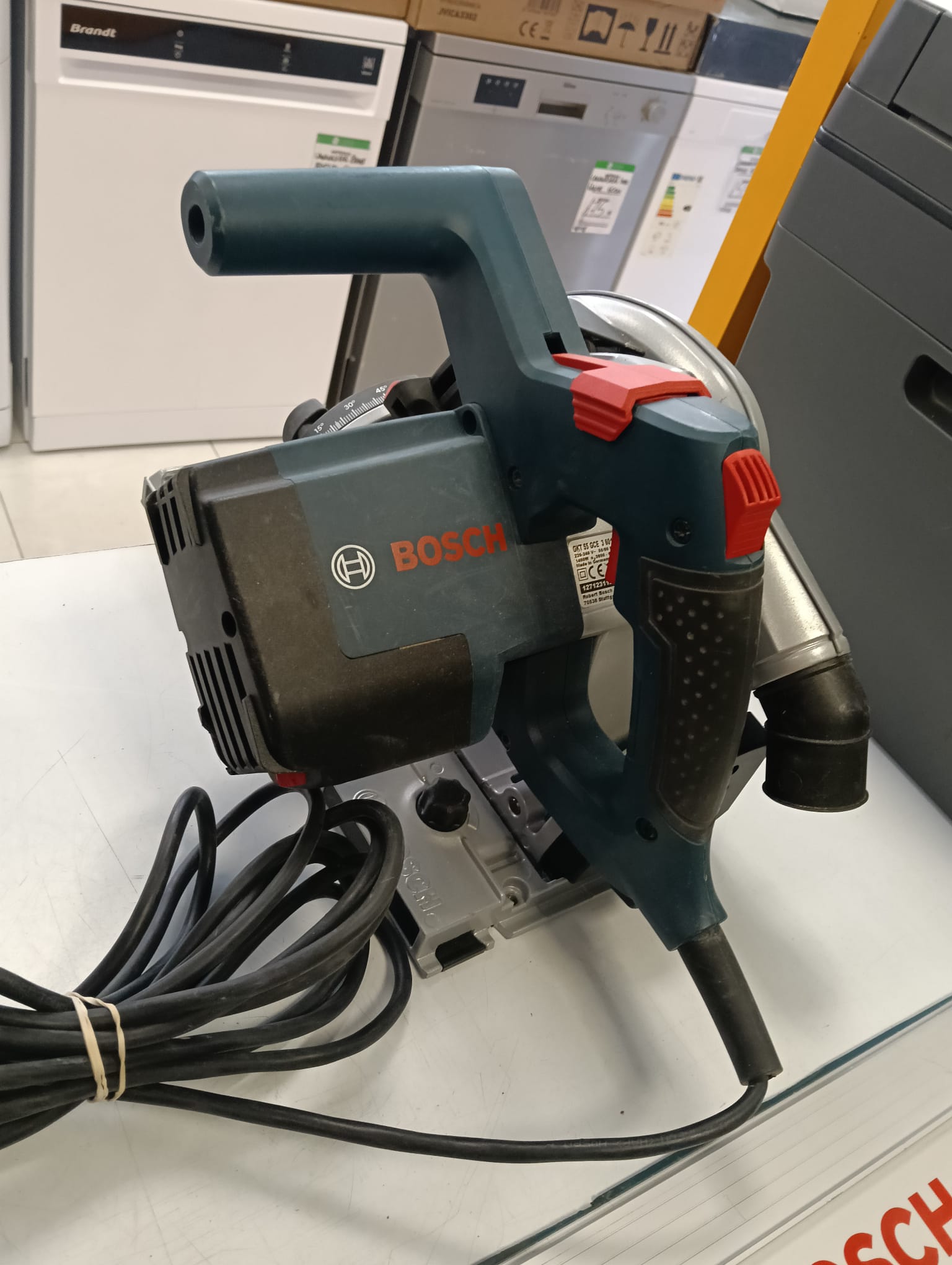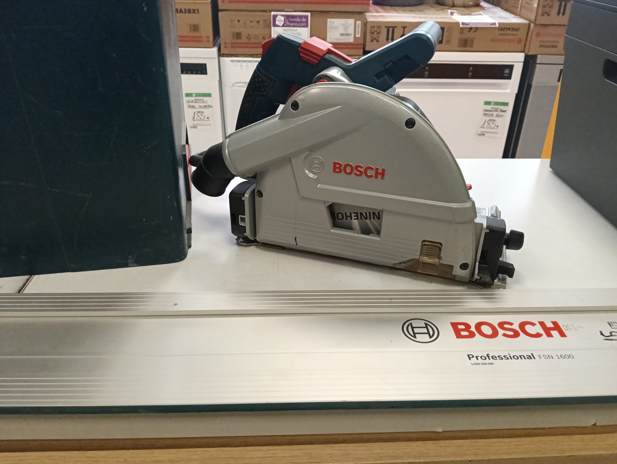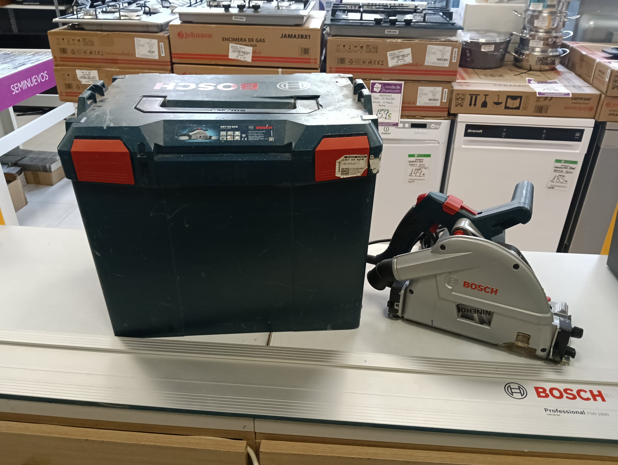 Sierra de inmersión Bosch GKT 55 GCE junto con sus 2 guías de 160cm. Incluye sierra de inmersión Bosch GKT 55 GCE. Incluye 2 guías Bosch. Sierra profesional. Potencia de 1400 W, Disco de sierra de Ø: 165 mm. Velocidad ajustable permite cortes en multitud de materiales. Angulo inclinación de 1o a 47o.