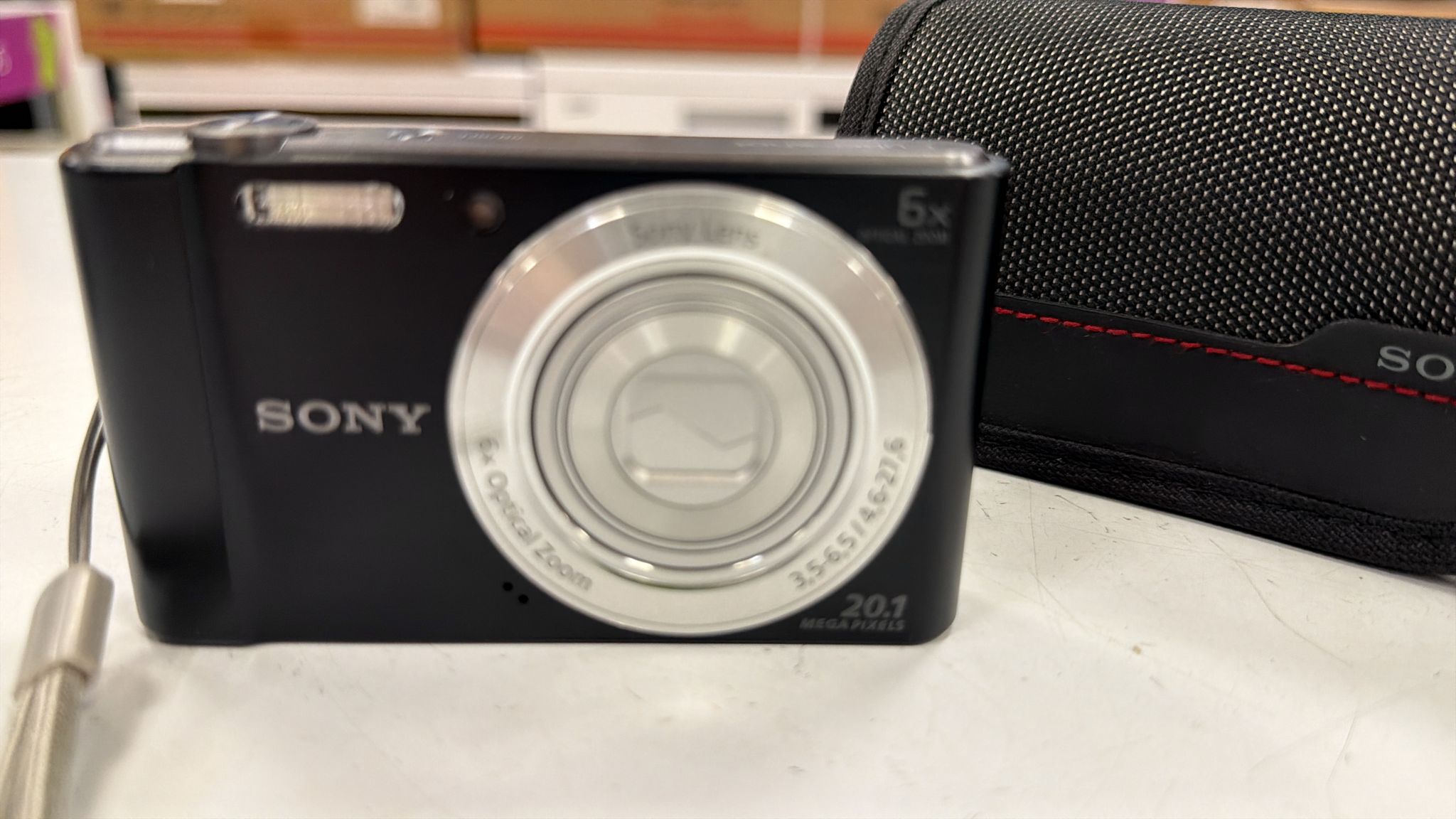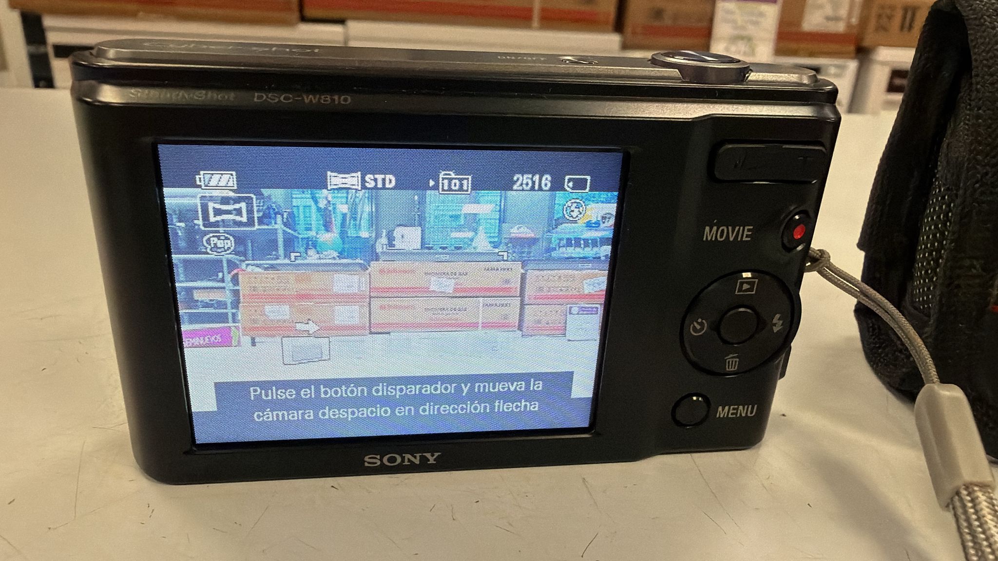 Cámara digital Sony Cyber-shot DSC-W810 en color negro, con funda protectora.Zoom óptico 6x.20.1 megapíxeles.Lente Carl Zeiss. Incluye funda Y Cable de carga.