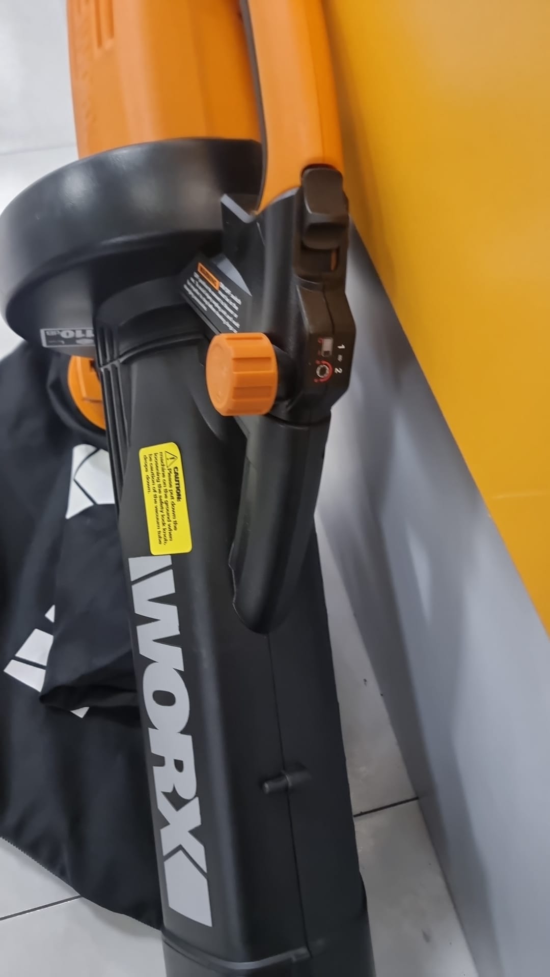 Sopladora de 3000w con una gran potencia eléctrica. Worx WG505E en color negro y naranja. Diseño ergonómico para un fácil manejo. Boquilla para concentrar el flujo de aire. Bolsa recolectora incluida. No ha tenido uso.