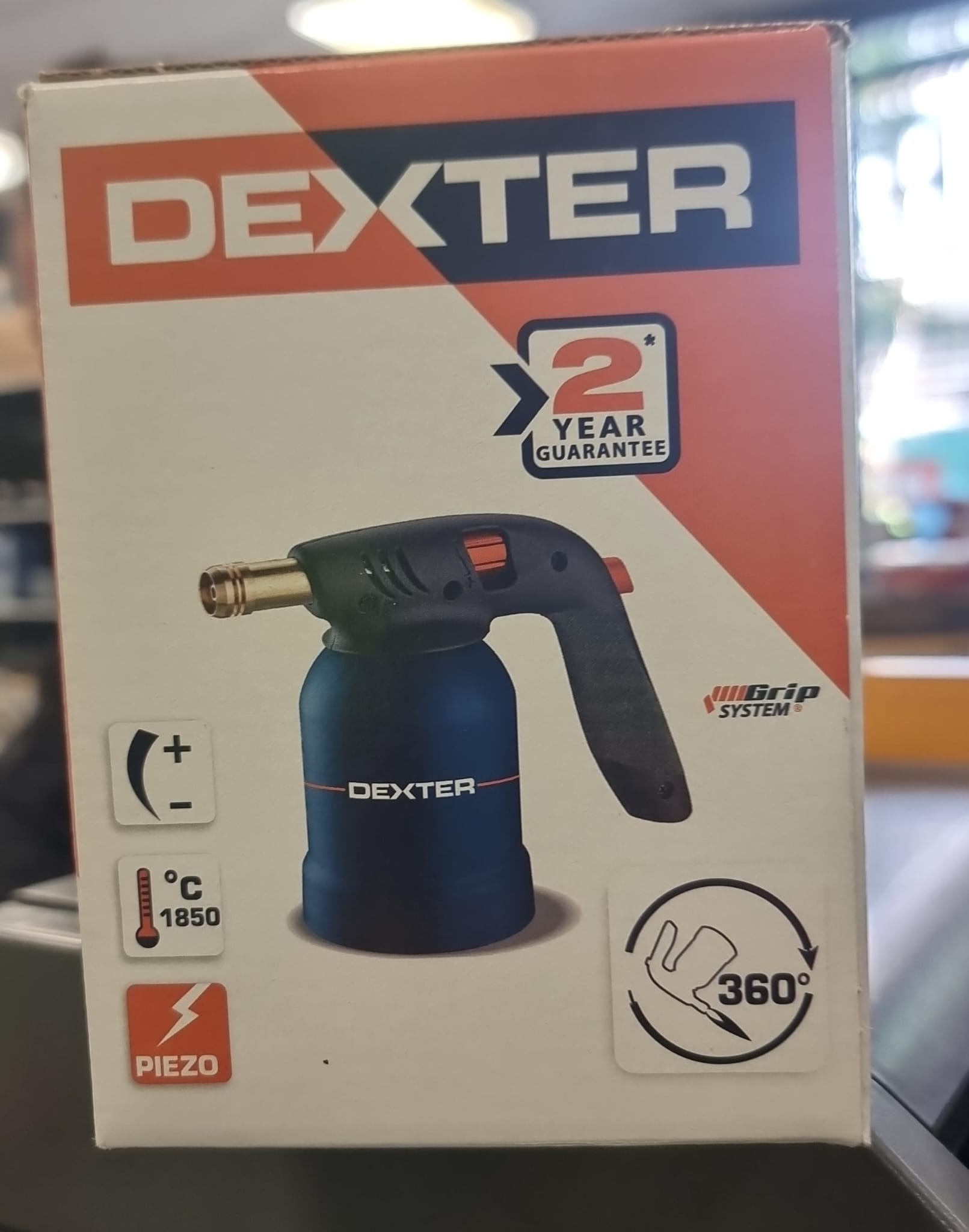 Sopletes de la marca Dexter.Temperatura máxima de 1850°C.Encendido piezoeléctrico. Sistema Grip. Giro de 360°.