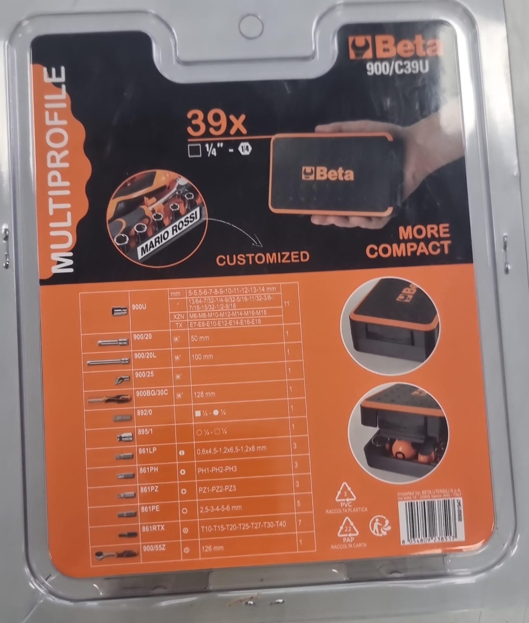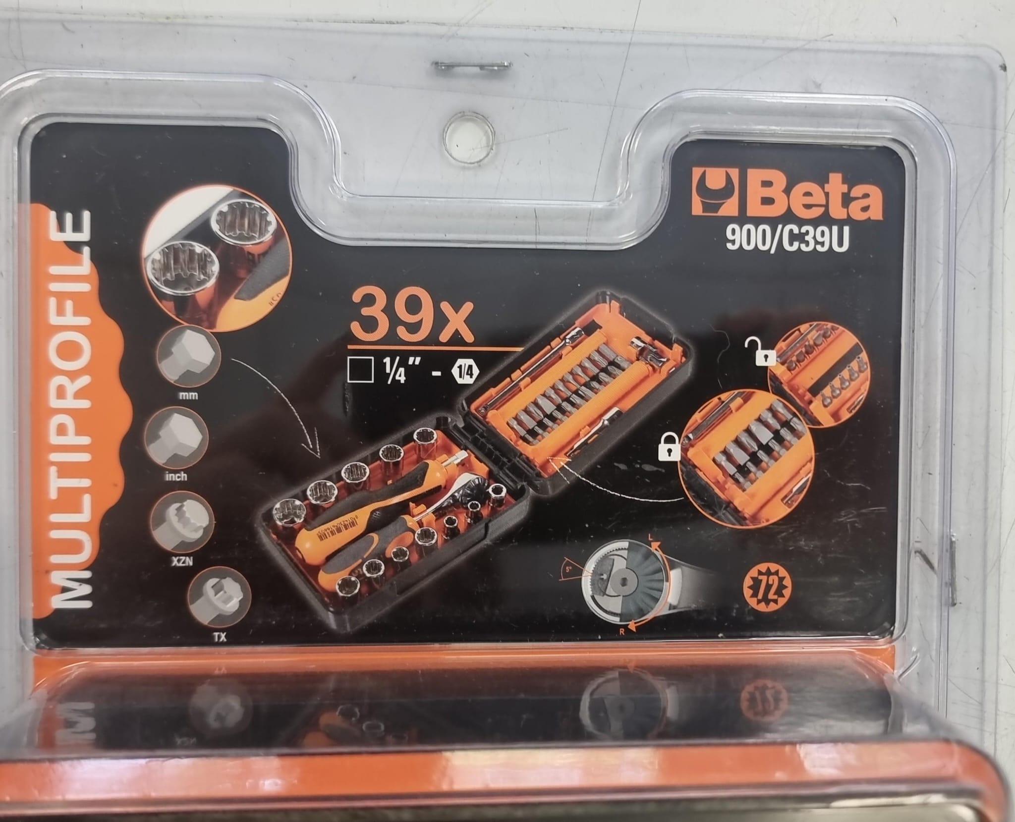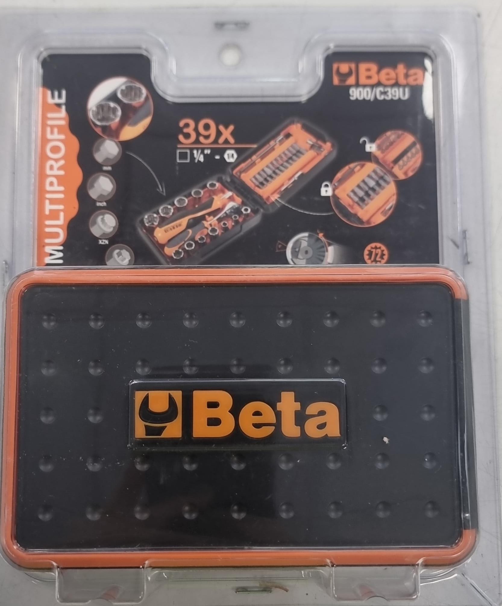 Surtido de llaves Beta 900/C39U. Sin uso. Pack compuesto de 11 llaves de vaso multihuella, 21 puntas de atornillar y 7 accesorios, con carraca reversible, en caja de plástico.