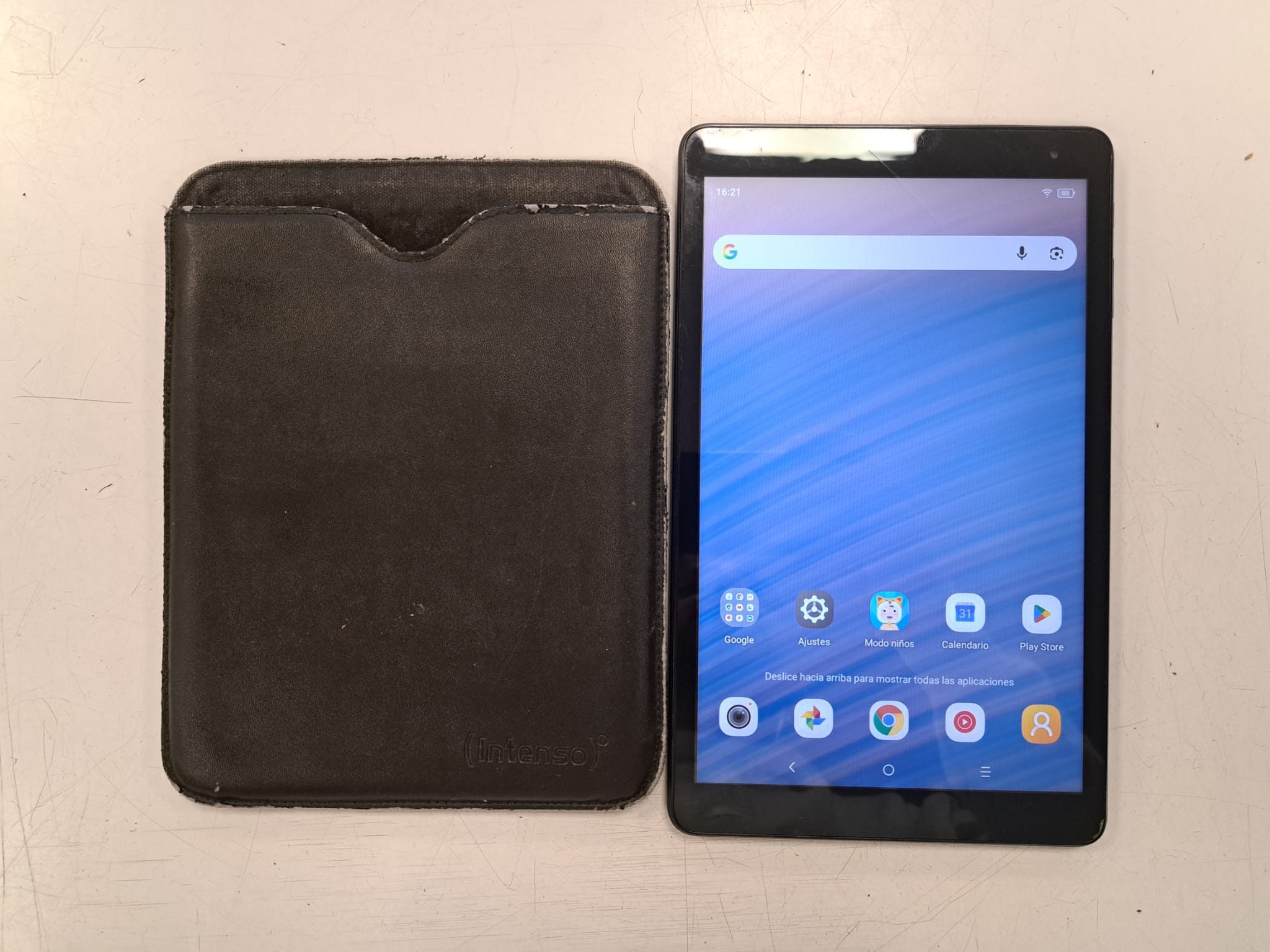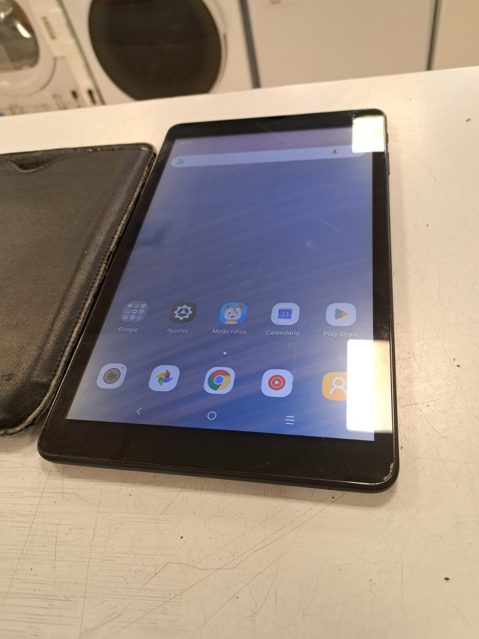 Tablet Alcatel 1T con funda protectora. Pantalla de 8 pulgadas. Almacenamiento interno de 32GB.Color negro.Incluye funda protectora de cuero.