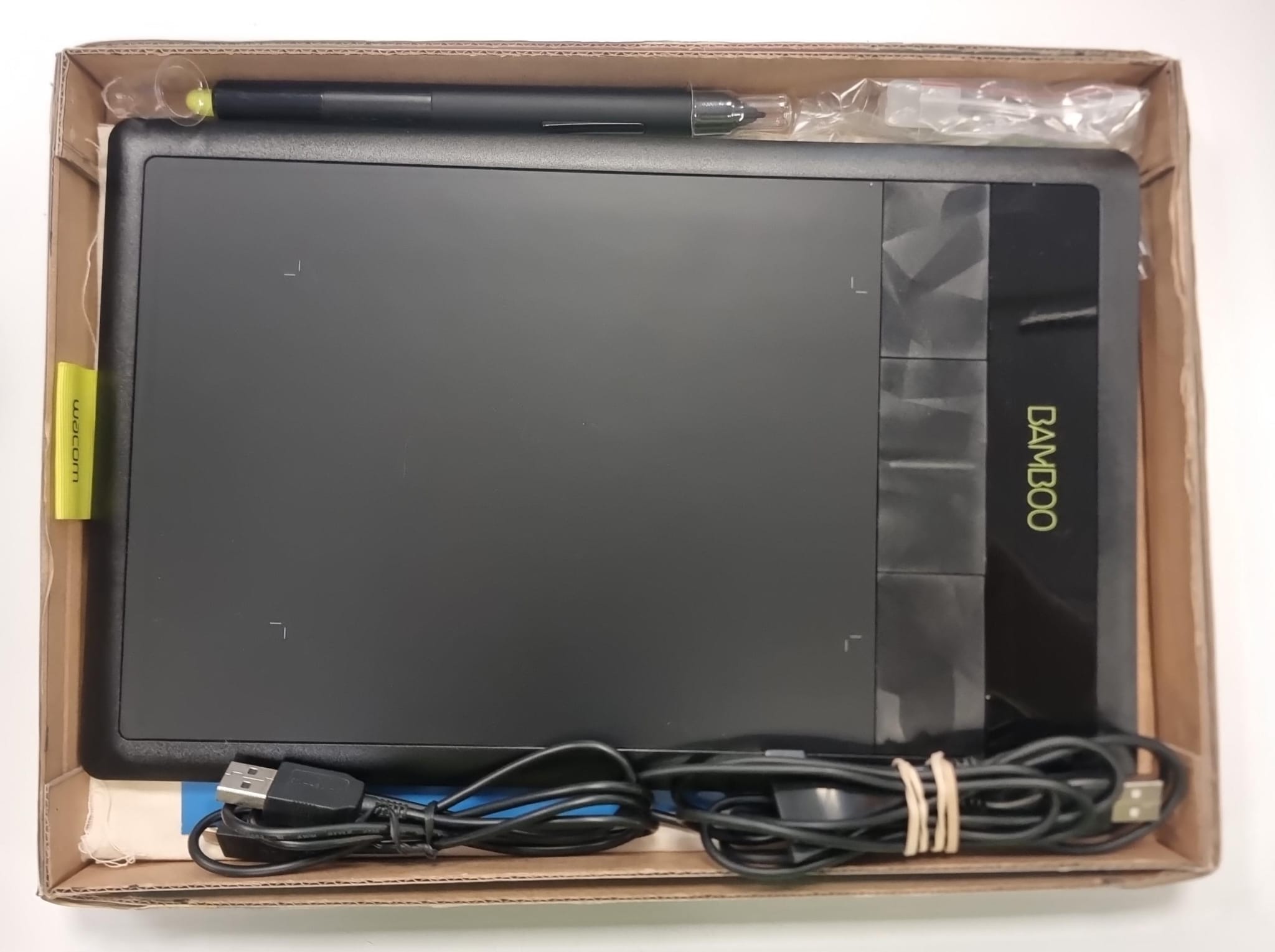 Tableta gráfica Wacom Bamboo CTH-470 en color negro. Incluye lápiz, cable USB y CD de drivers.Modelo: CTH-470K-ITES Incluye lápiz ópticoCable de conexión USB. CD con software y drivers.