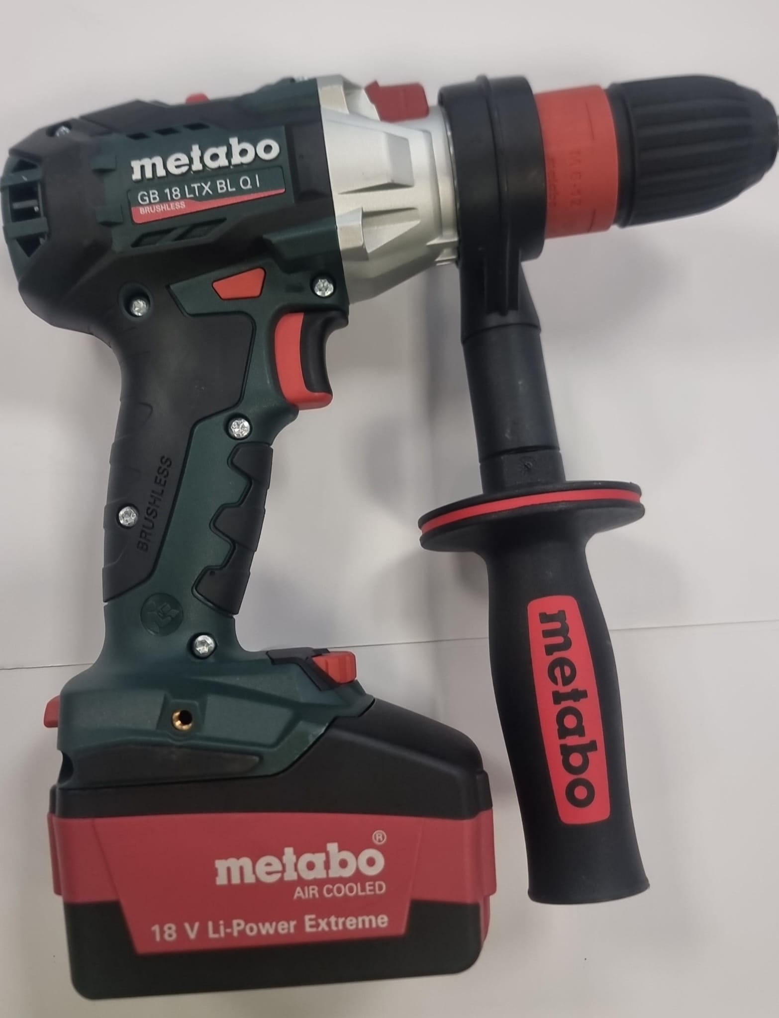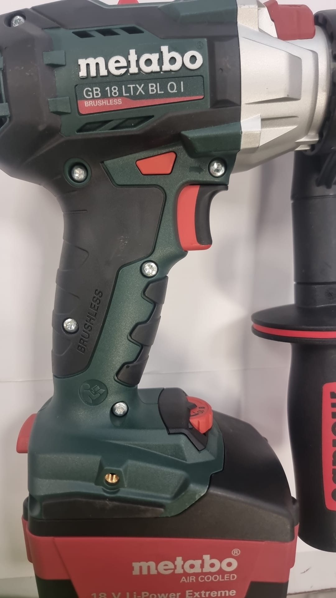 Taladro percutor inalámbrico Metabo GB 18 LTX BL Q I con batería.Modelo: GB 18 LTX BL Q IVoltaje: 18 VTipo de batería: Li-Power ExtremeCapacidad de batería: 4.0 Ah. Tecnología: Brushless (sin escobillas).