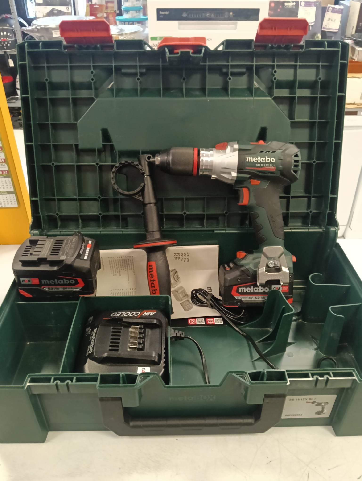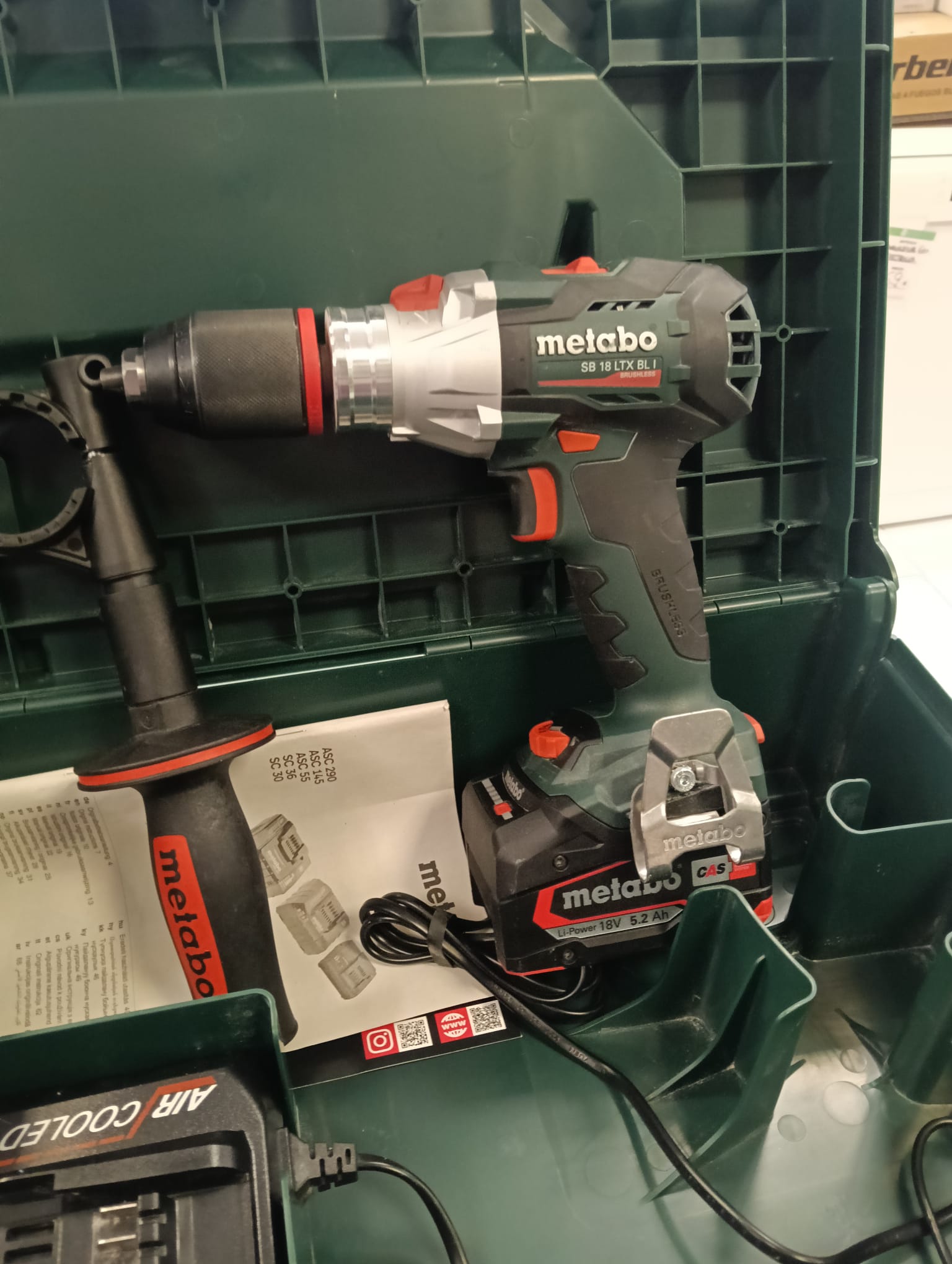 Se vende taladro percutor inalámbrico Metabo SB 18 LTX BL I con dos baterías de 5.2 Ah y cargador.Taladro percutor inalámbrico Metabo SB 18 LTX BL I. Incluye 2 baterías de 5.2 Ah. Cargador de baterías. Maletín de transporte.