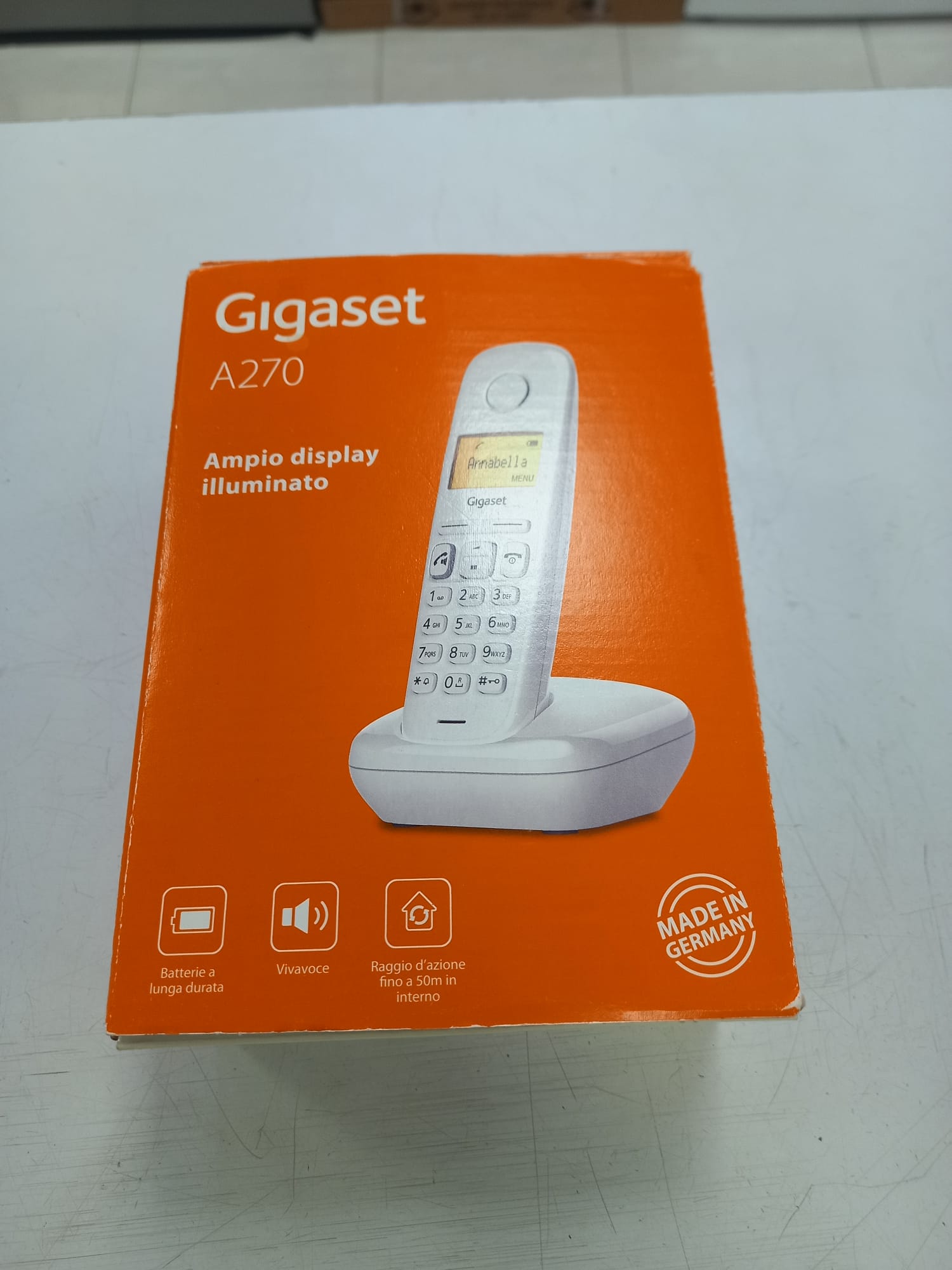 Teléfono inalámbrico Gigaset A270 con pantalla iluminada.Batería de larga duración. Función Vivavoz. Rango de alcance de hasta 50m en interiores.