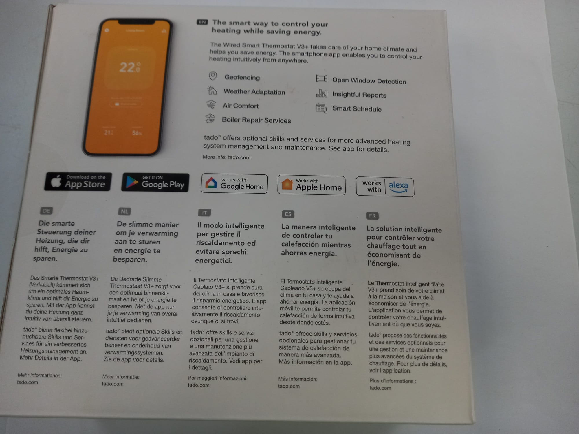 Termostato Inteligente Tado Kit de Inicio V3+. Control inteligente de calefacción, fácil instalación, diseñado en Alemania, compatible con Amazon Alexa, Siri y Asistente de Google. Nuevo a estrenar.