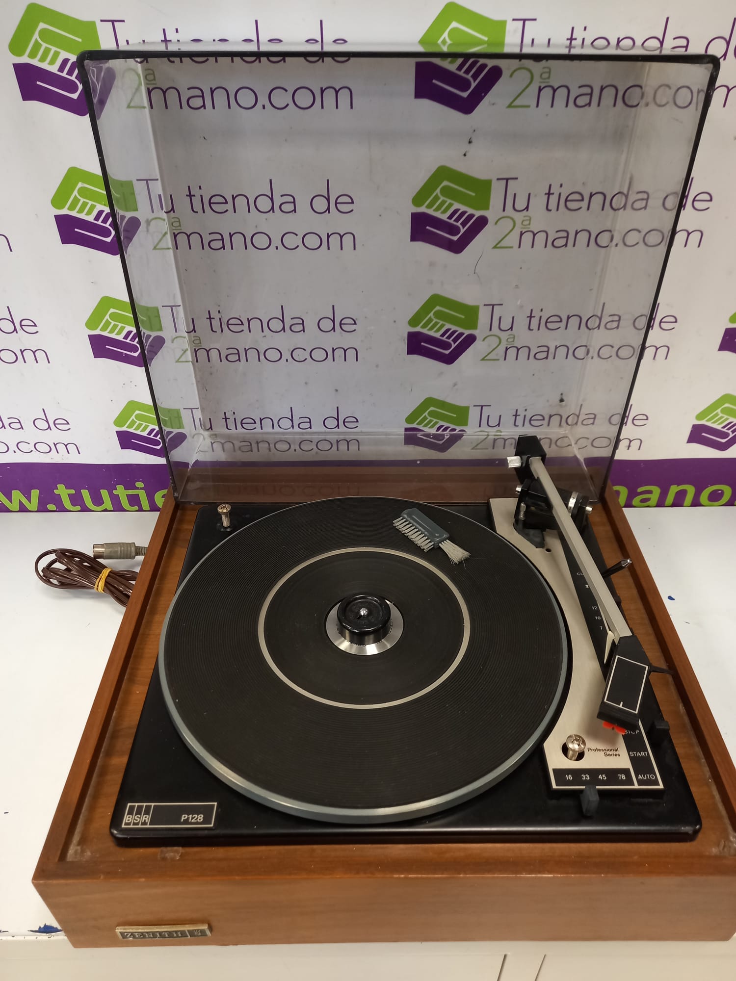Tocadisco Modelo ZENITH BSR P128 ,caja de madera incluye tapa y reproduce en 16,33,45 y 78 rpm.