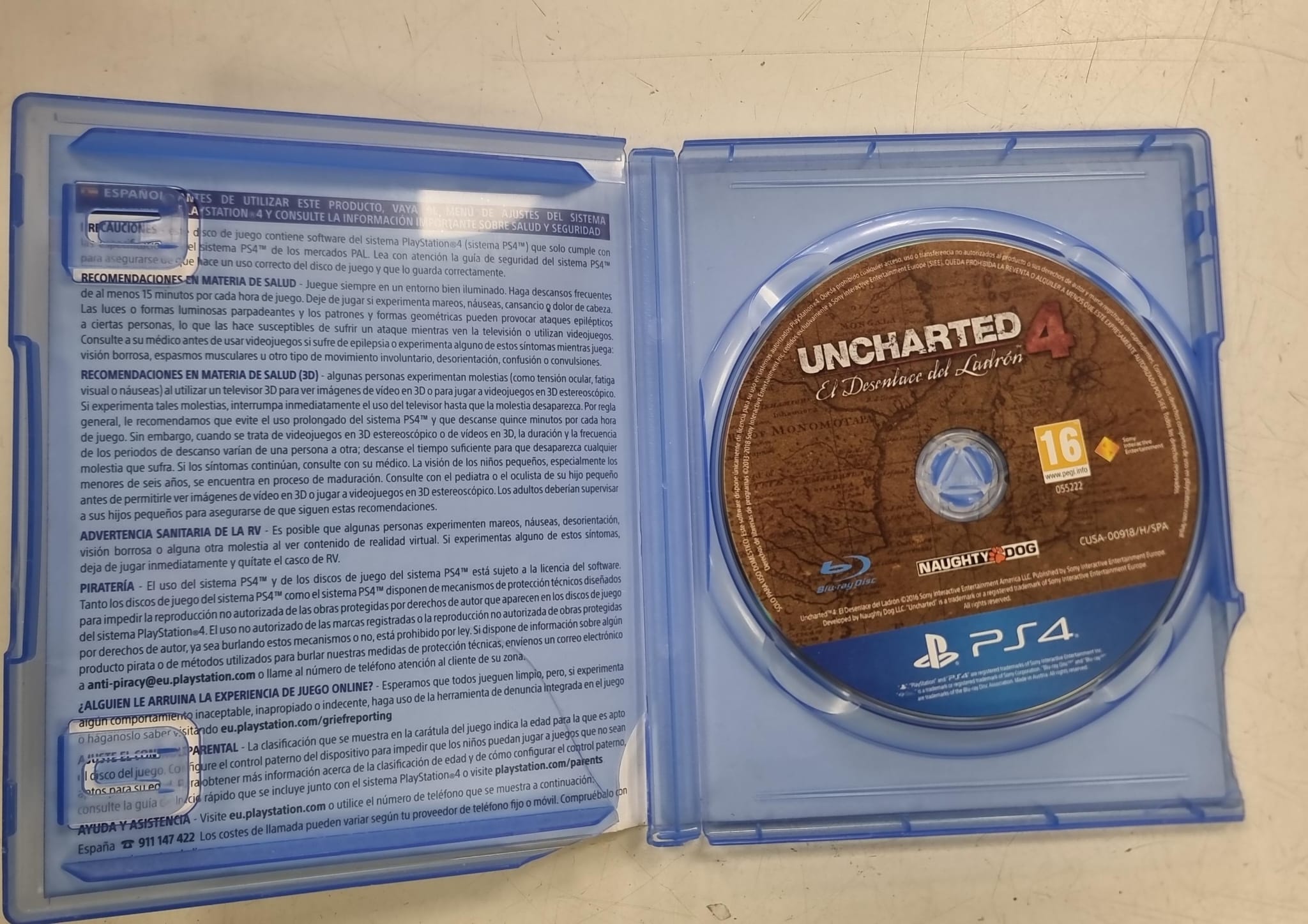 Videojuego. UNCHARTED EL DESENLACE DEL LADRON 4 PS4. Desperfecto en la caja como se observa en la imagen.