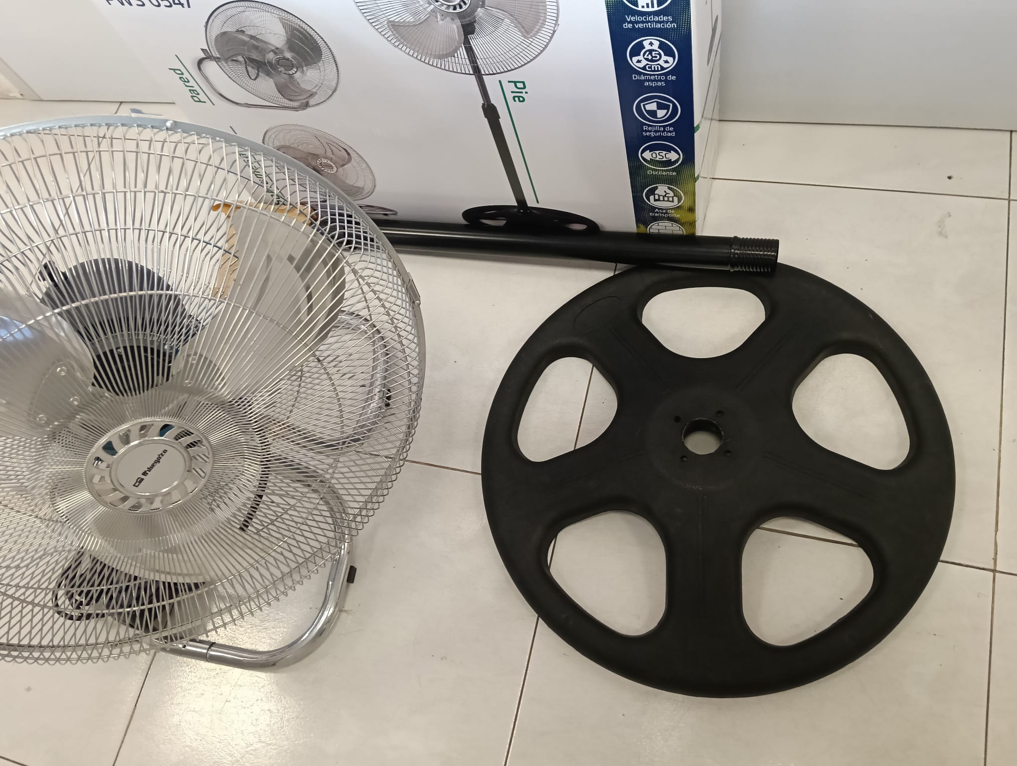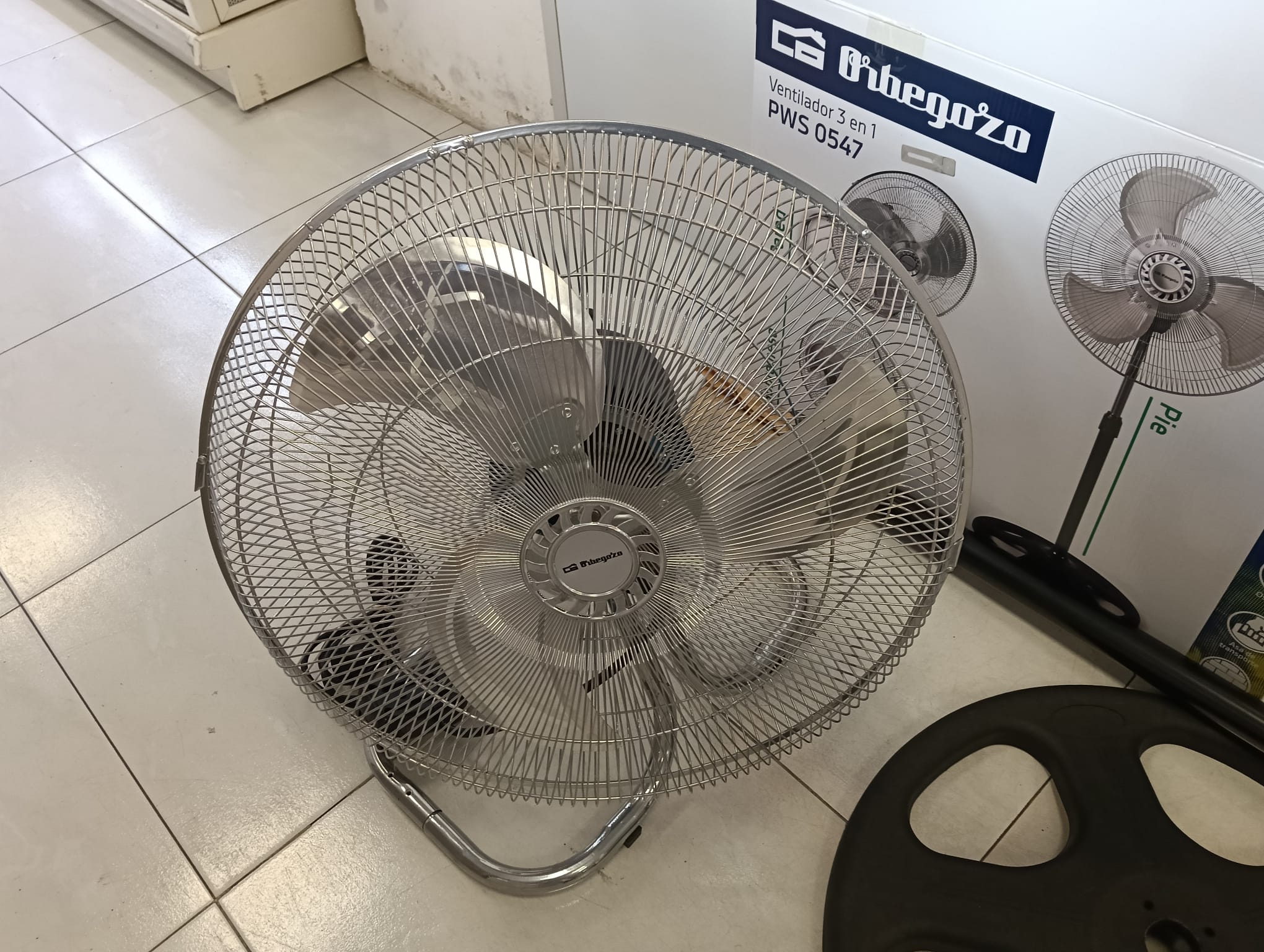 Ventilador Orbegozo modelo PWS 0547, con función 3 en 1.Base redonda para mayor estabilidad.Rejilla protectora metálica. Cuerpo principal plateado.
