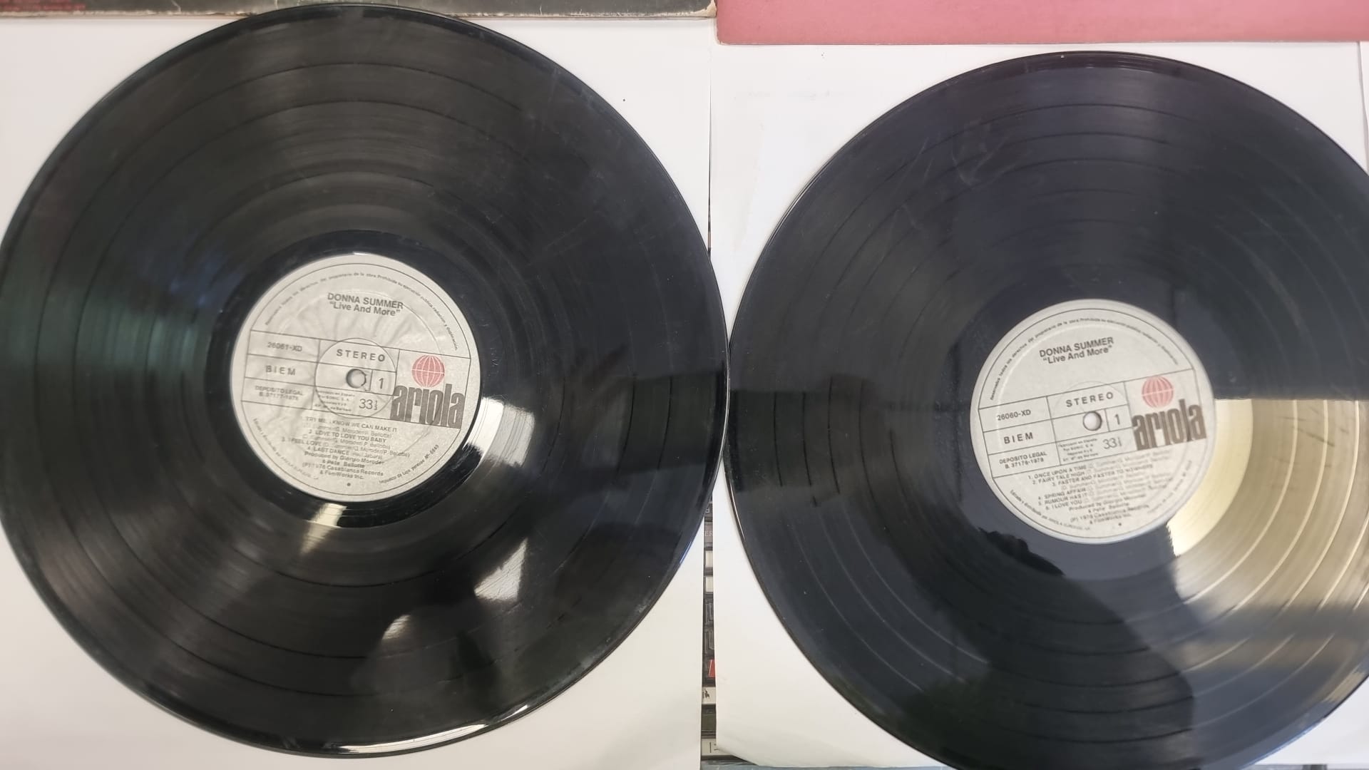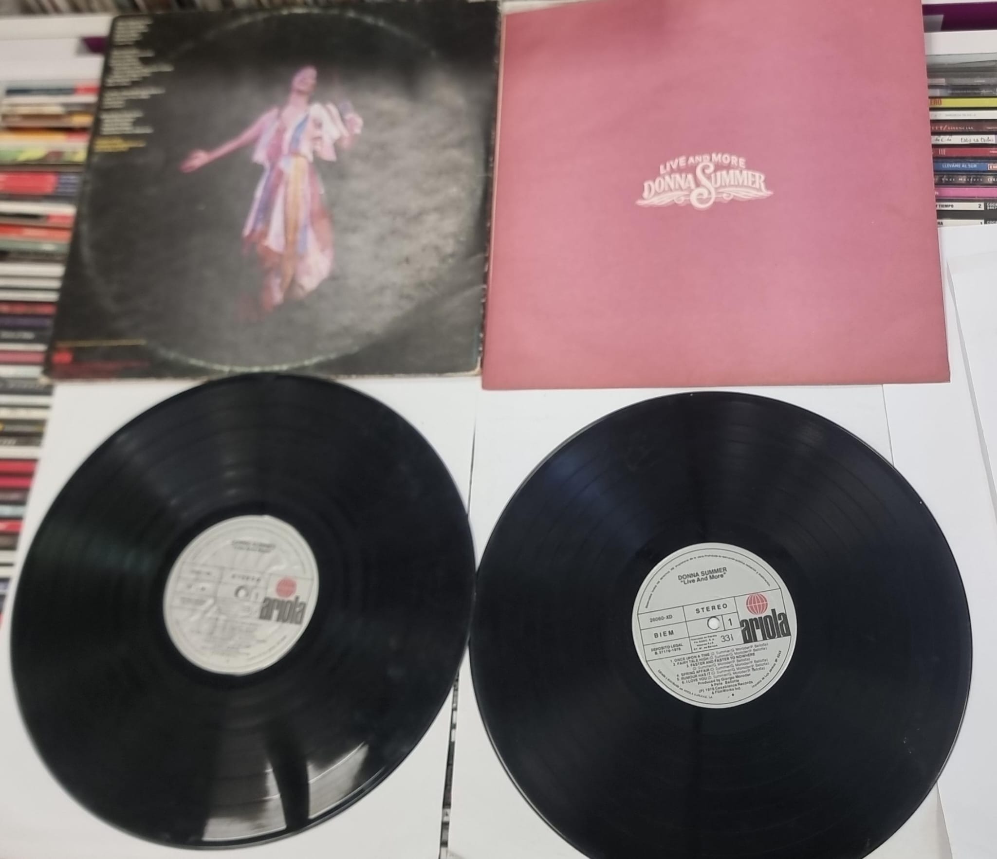 Doble LP de vinilo del álbum Live And More de Donna Summer, lanzado en 1978. Signos visibles de uso.