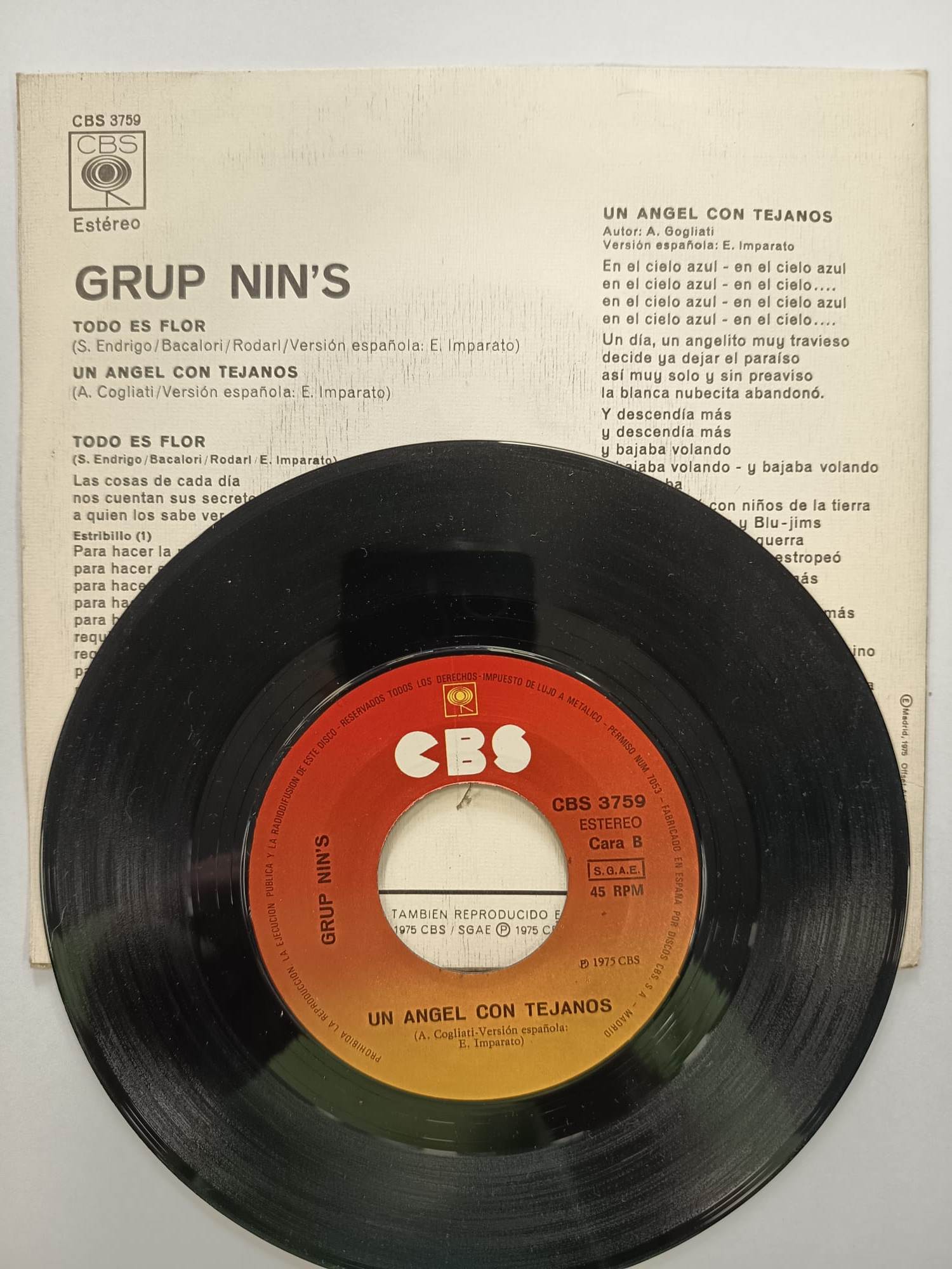 Vinilo exclusivo con escasas unidades sacadas a la venta. Disco de vinilo de 7 pulgadas del Grup Nins.