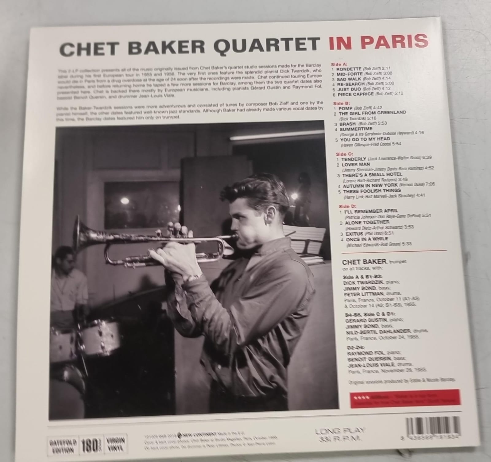 Disco de vinilo del álbum Chet Baker Quartet In Paris. Grabación de jazz.