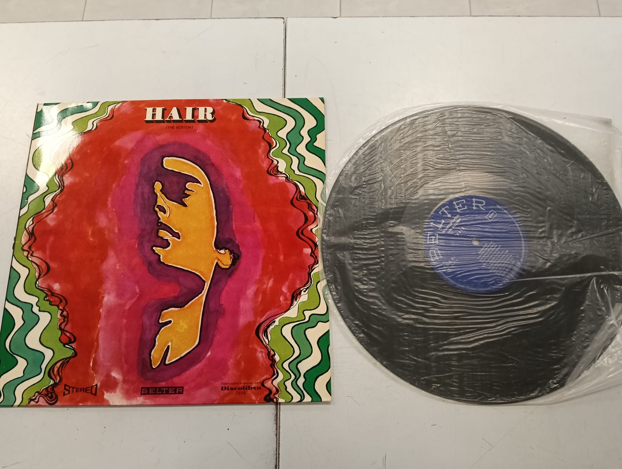 Disco de vinilo del musical Hair The Boston. Portada con diseño psicodélico. Incluye el LP. Sello Belter.