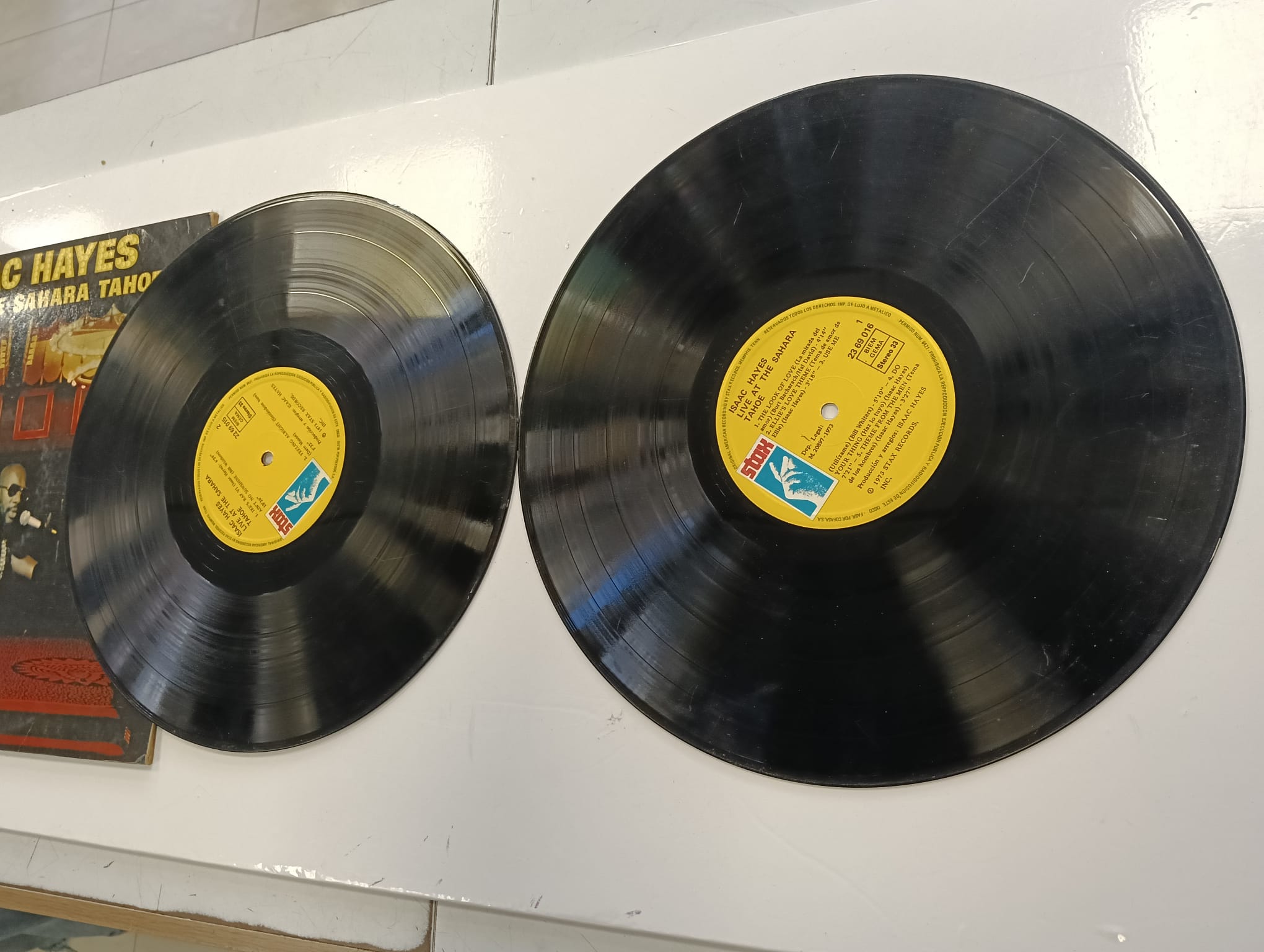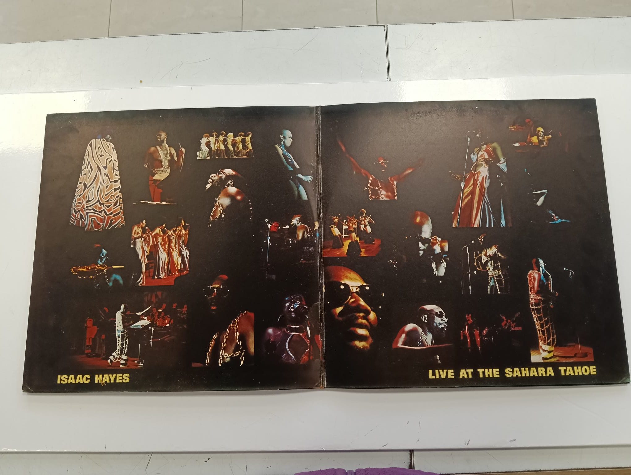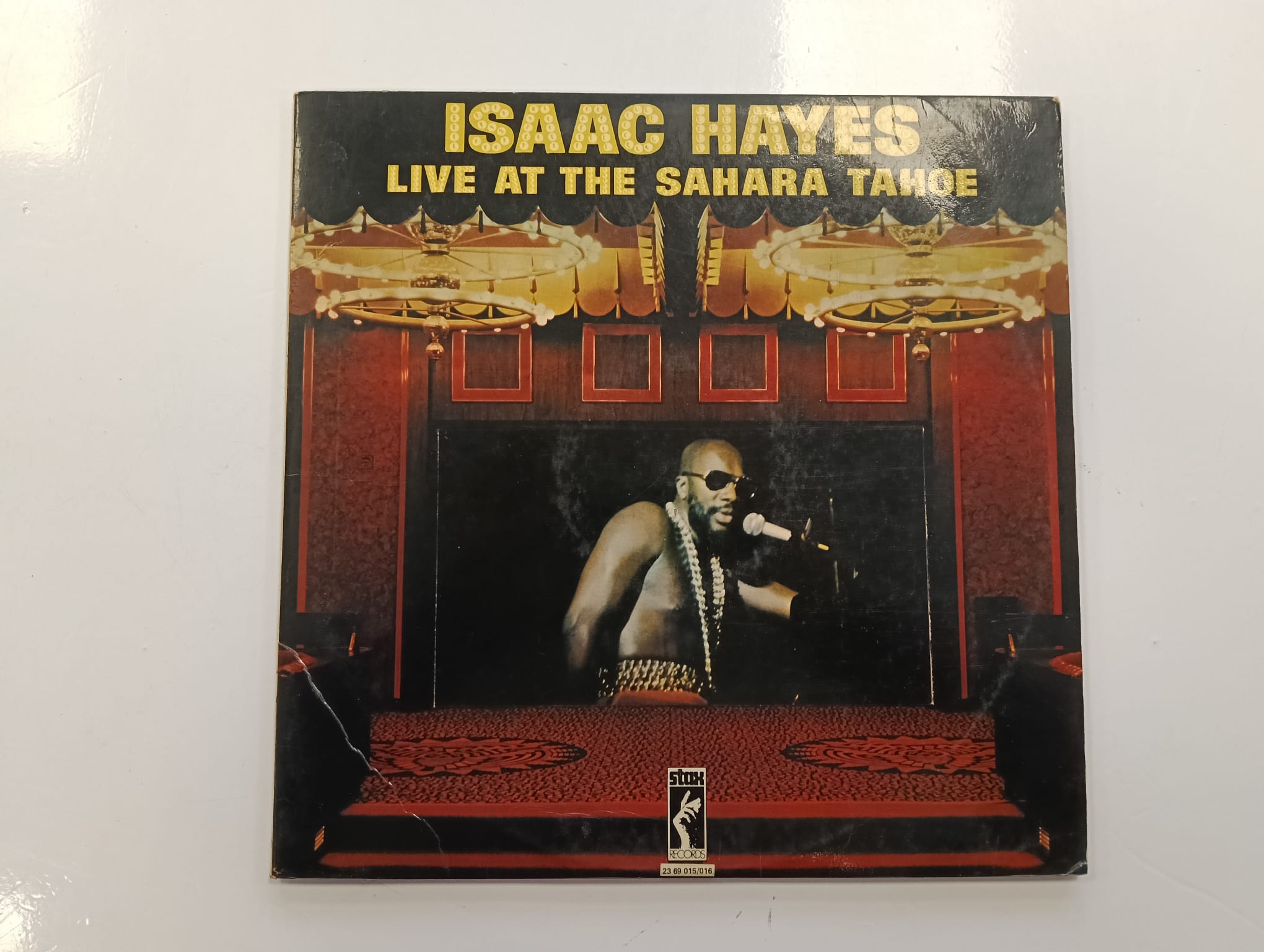 Disco de vinilo de Isaac Hayes, Live at the Sahara Tahoe. Grabación en directo. Género R&B y Soul. Signos visibles de uso.