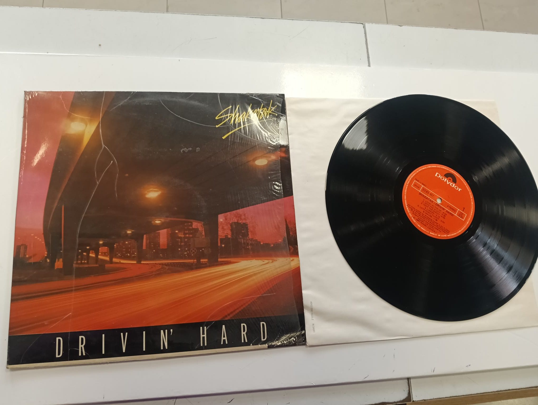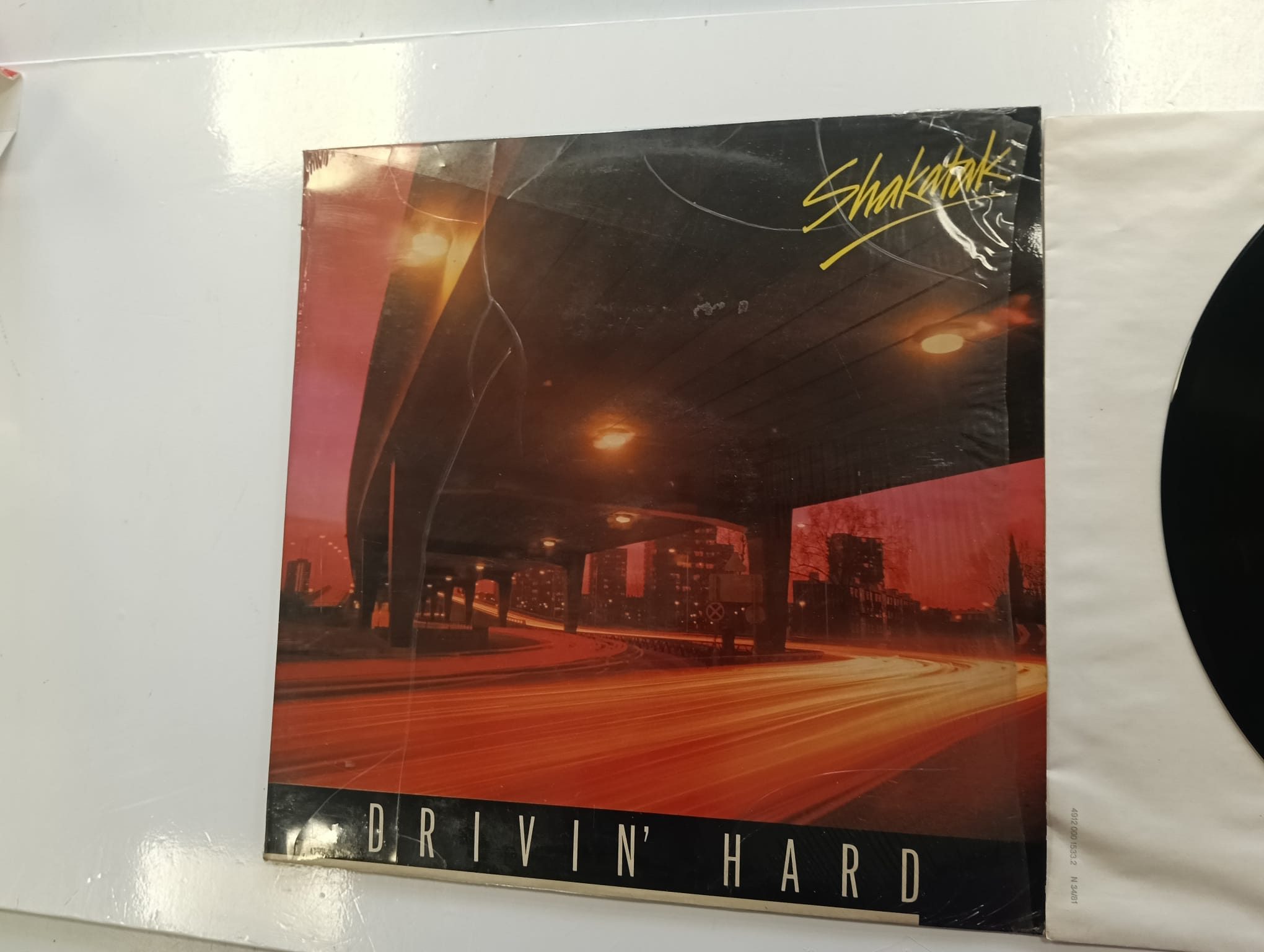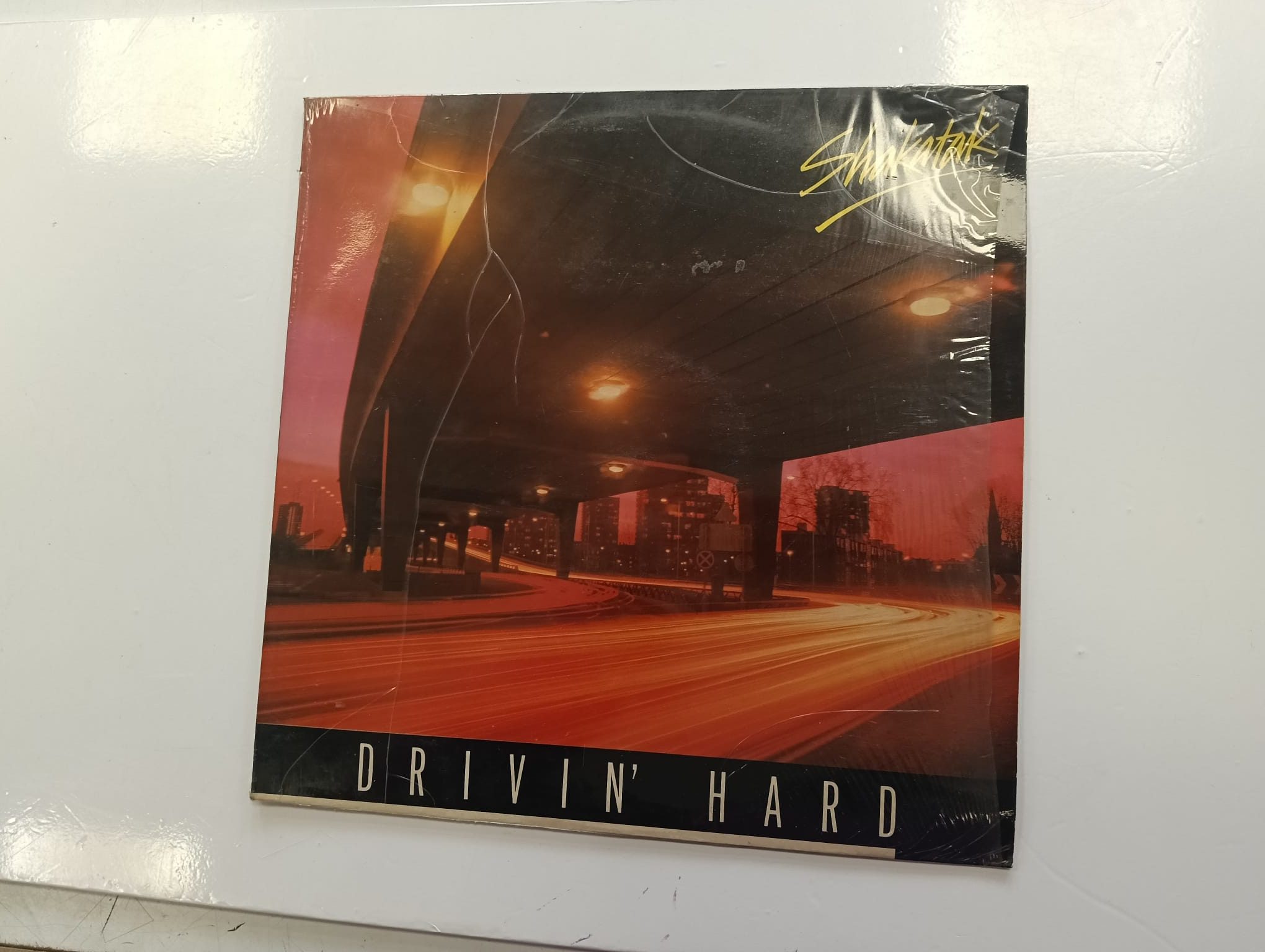 Vinilo del álbum Drivin' Hard de Shakatak.Portada con diseño urbano nocturno. Incluye el LP.